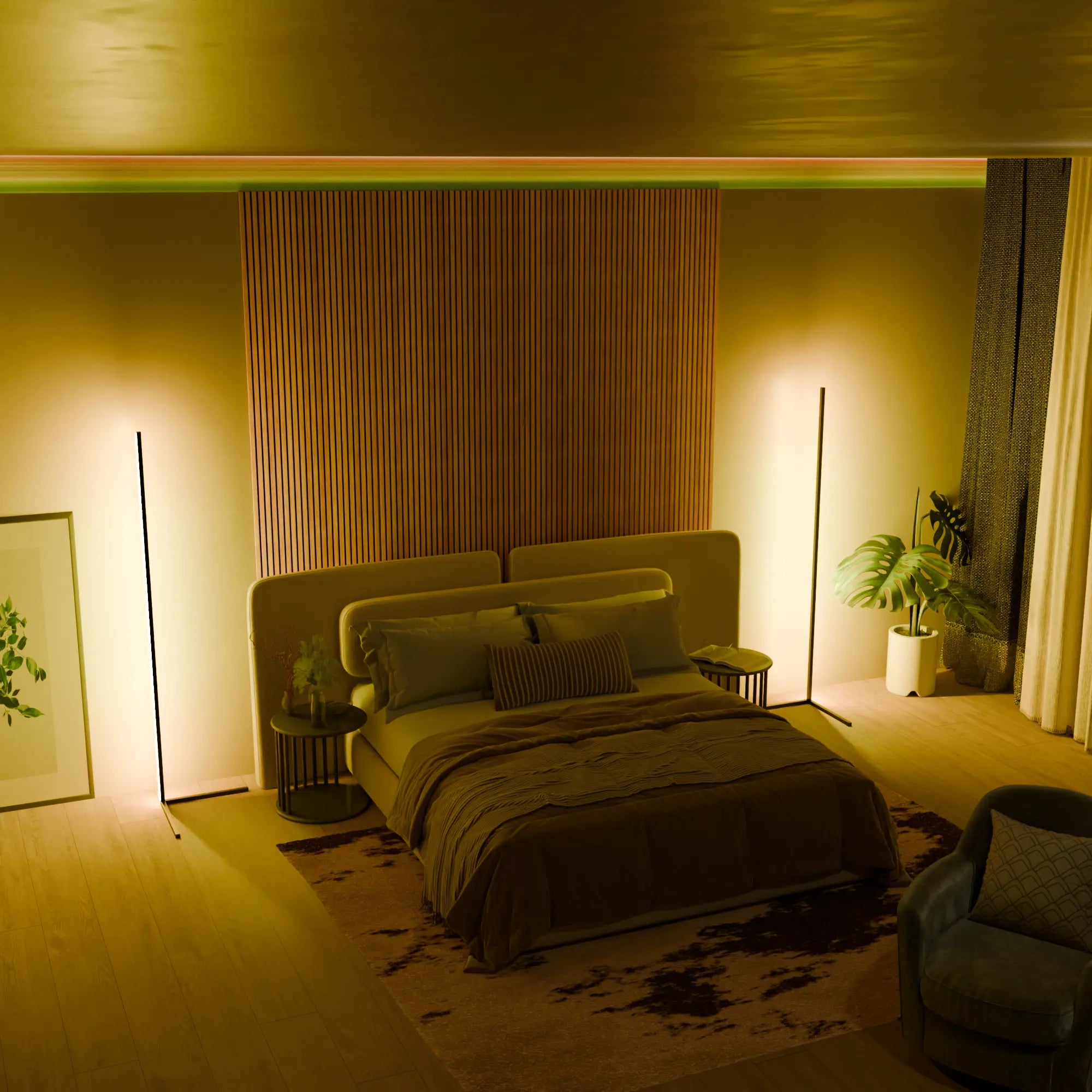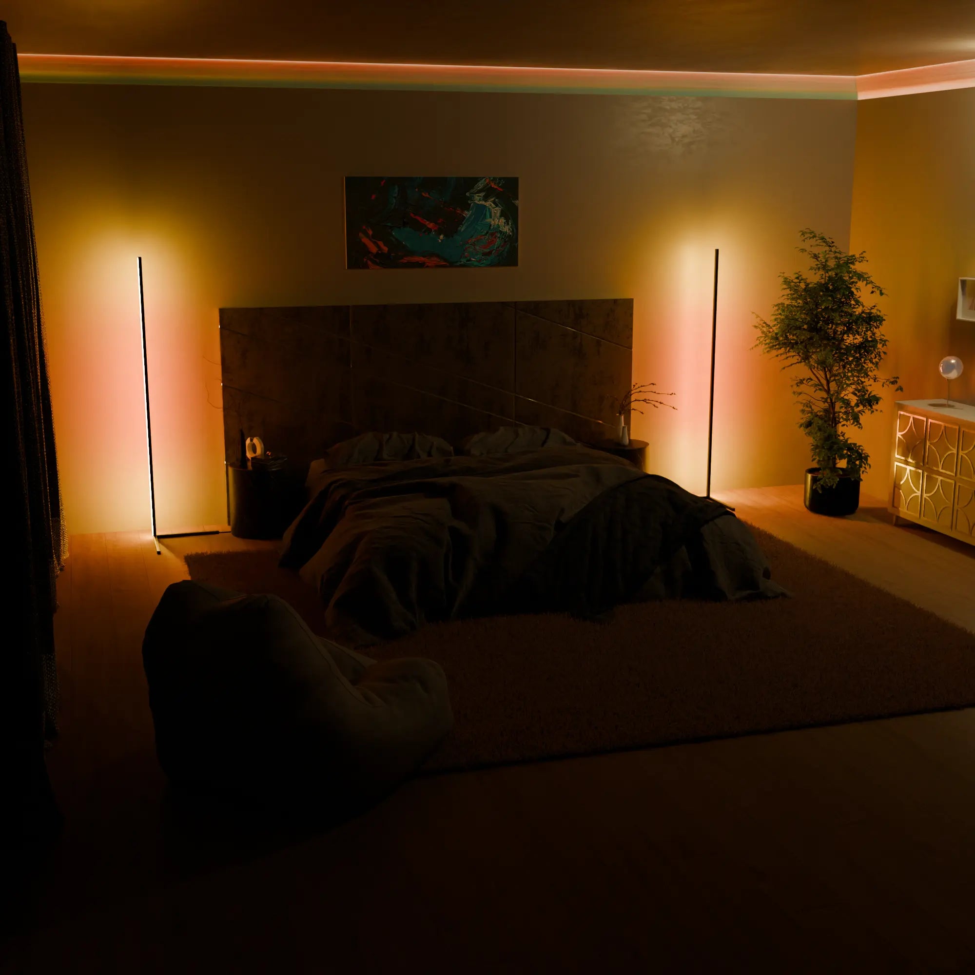 Create the perfect atmosphere with soothing or vibrant lighting in your bedroom.